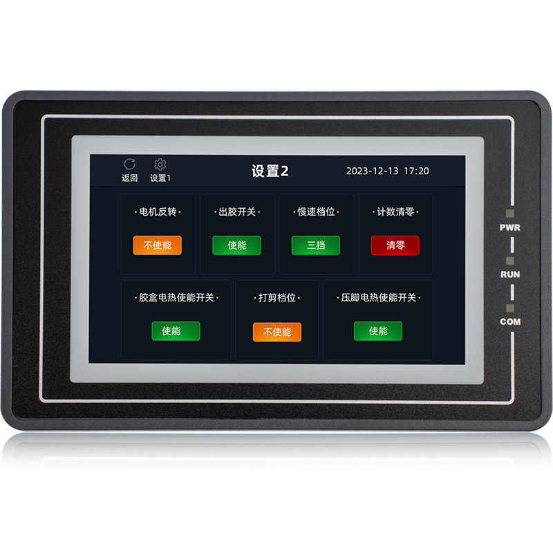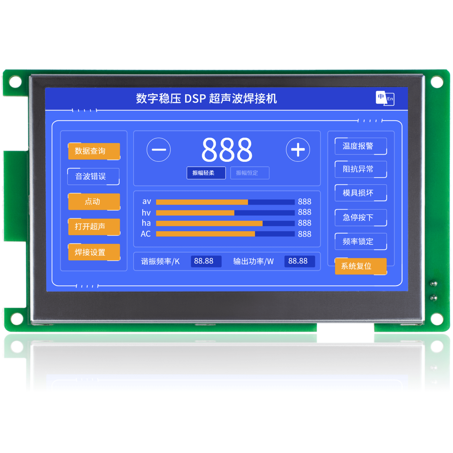 金璽HMI應(yīng)用在超聲波控制上,安裝在控制機箱上對超聲波進(jìn)行數(shù)據(jù)設(shè)定和監(jiān)控。